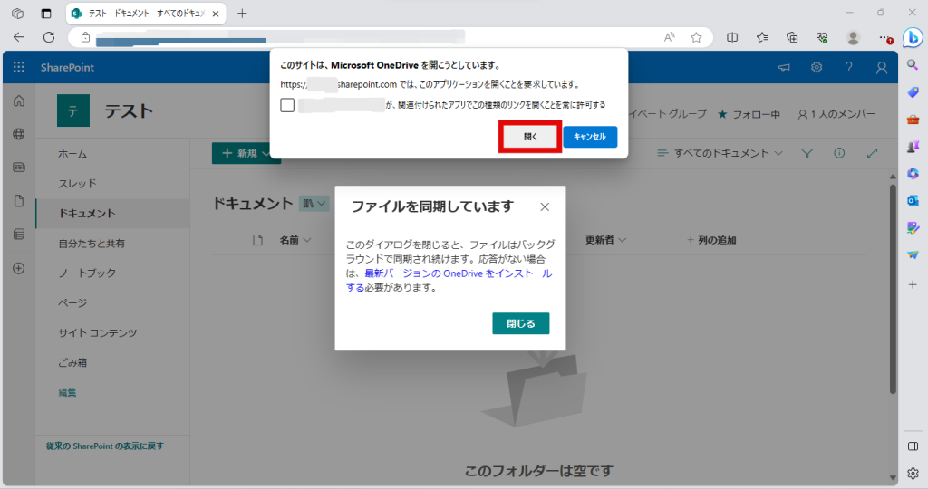 ここでのヒントは同期したいファイルやドキュメントを含むサイトに確実にアクセスすることです。