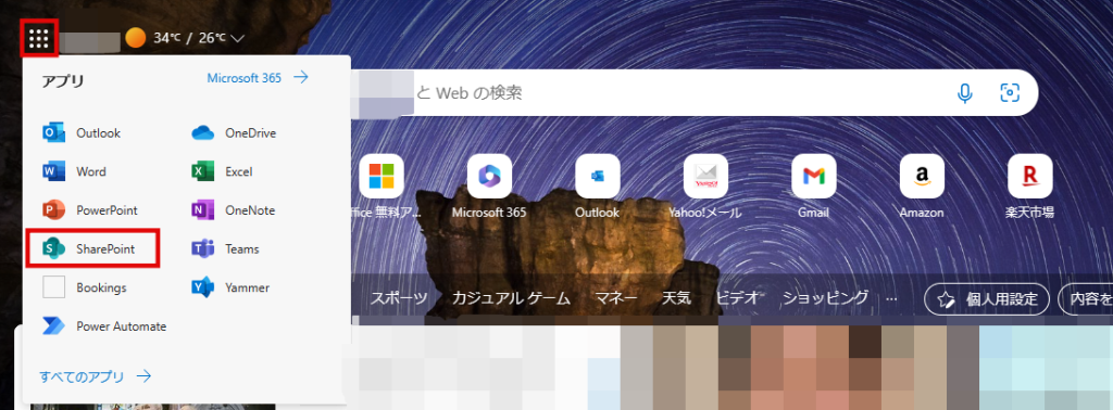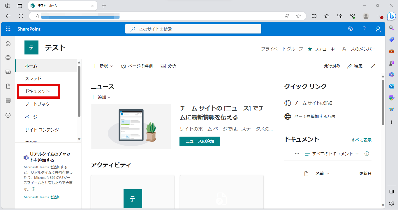 Step 1: SharePointのサイトへ移動します。